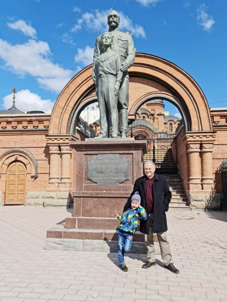 Памятник Николаю II с сыном напротив Церкви Александра Невского